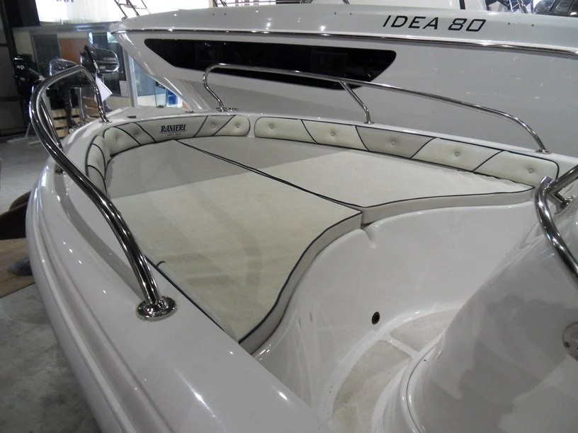 tendalino parasole, serbatoio carburante fisso originale Ranieri da 60 litri circa con indicatore, ecoscandaglio Garmin Striker 5, carrello stradale Satellite da 1000 kg massa complessiva anno 2022.